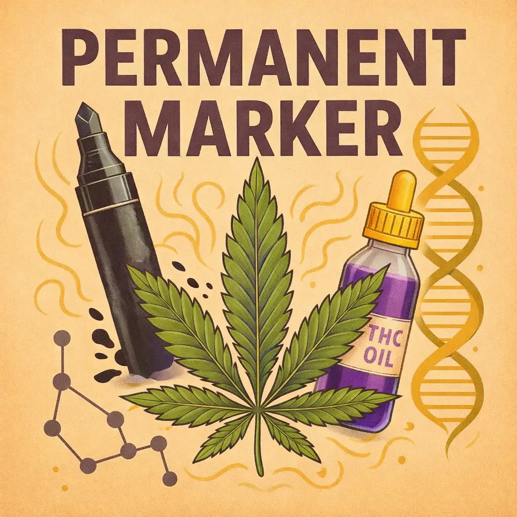 Permanent Marker ist eine feminisierte Premium-Sorte, die ihrem Namen alle Ehre macht. Ihr markantes Aromaprofil vereint chemisch-würzige Noten, die an frische Marker-Tinte erinnern, mit gasigen, süßlich-cremigen Untertönen. Eine außergewöhnliche Sorte für Kenner, die kräftige, moderne Terpenprofile mit Wiedererkennungswert suchen.